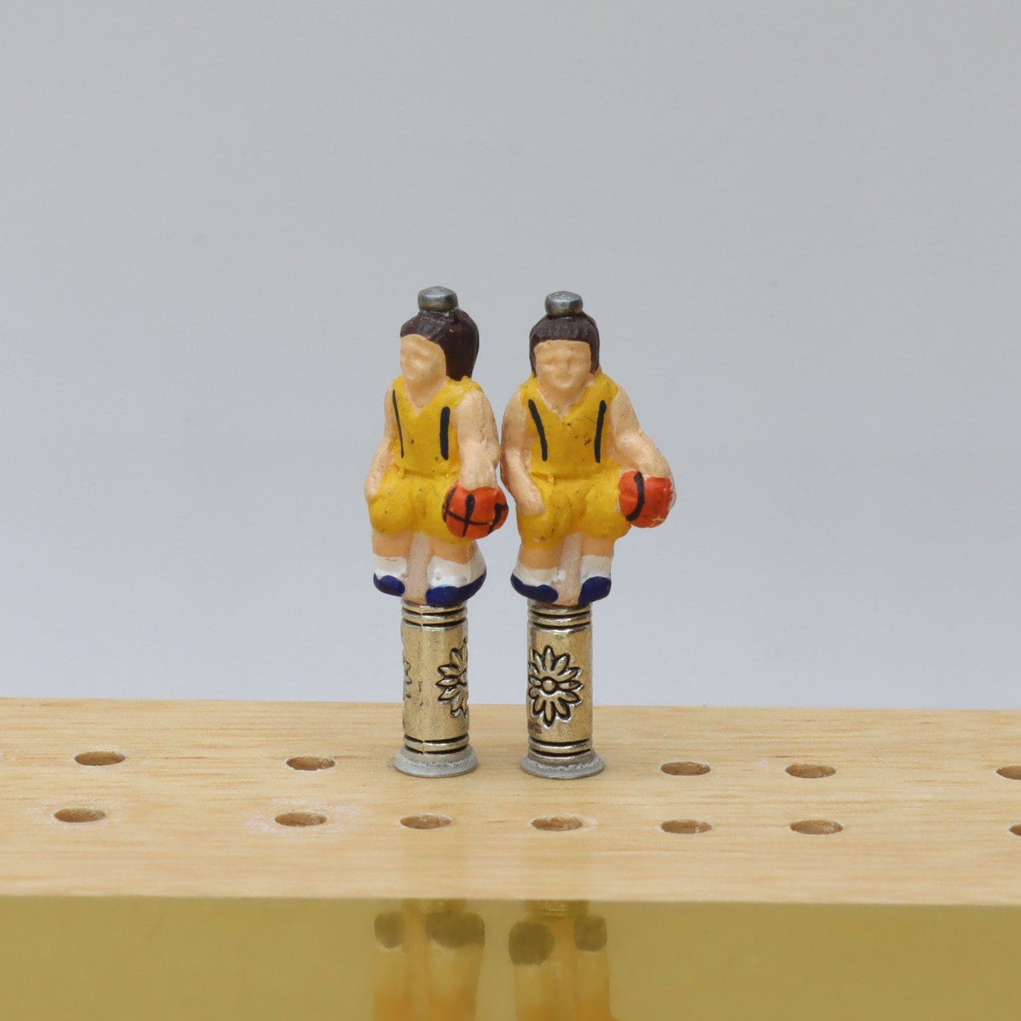 Basketball Player Cribbage Pegs bring the excitement and motion of the basketball court to your cribbage board. Each peg is shaped like a miniature player dribbling, shooting, or dunking, making scorekeeping lively and visually engaging. Designed to fit standard cribbage board holes, they glide smoothly as you track your points around the board.
