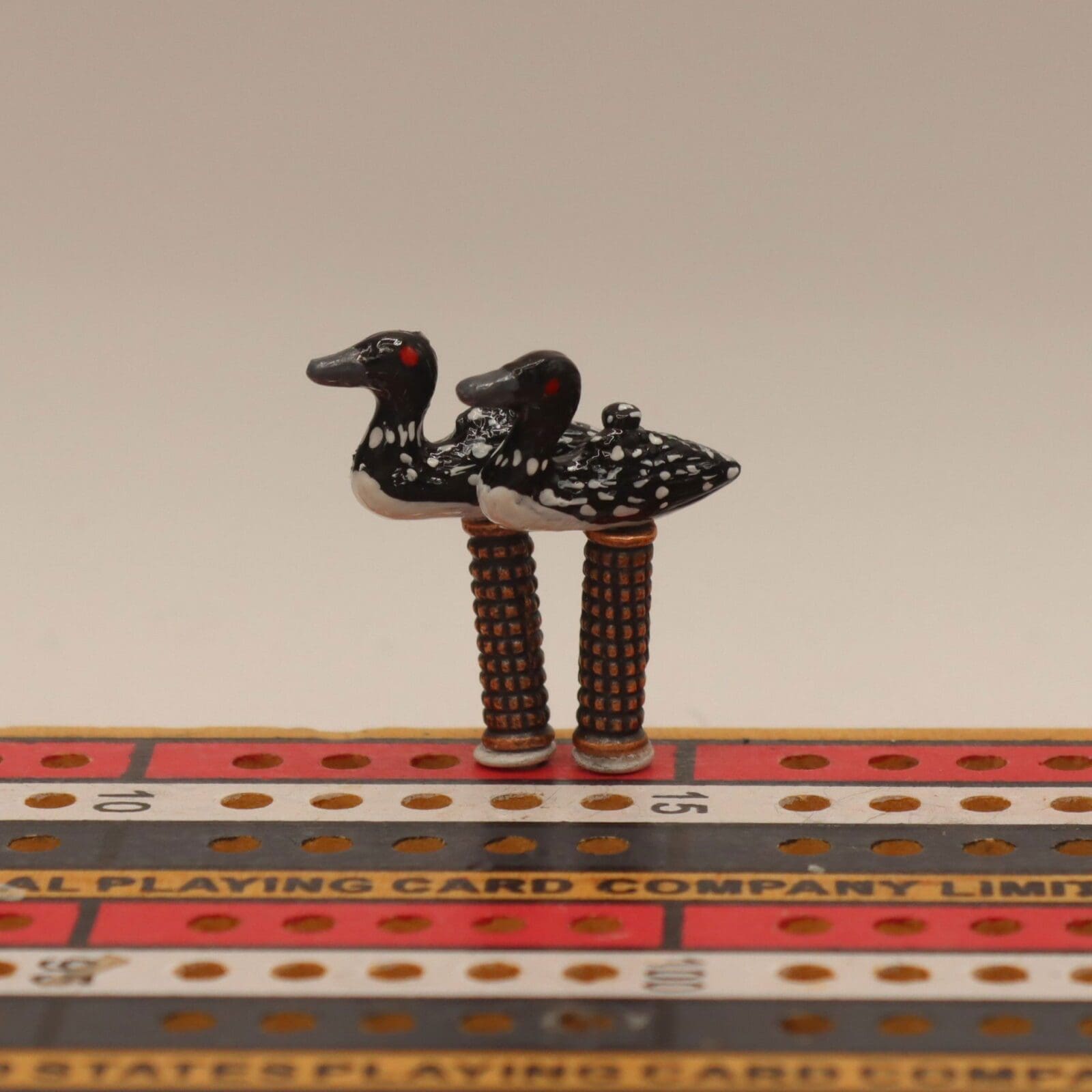 Hand‑painted Common Loon cribbage pegs inspired by the graceful loon bird — perfect for adding a touch of wilderness charm to your cribbage games.