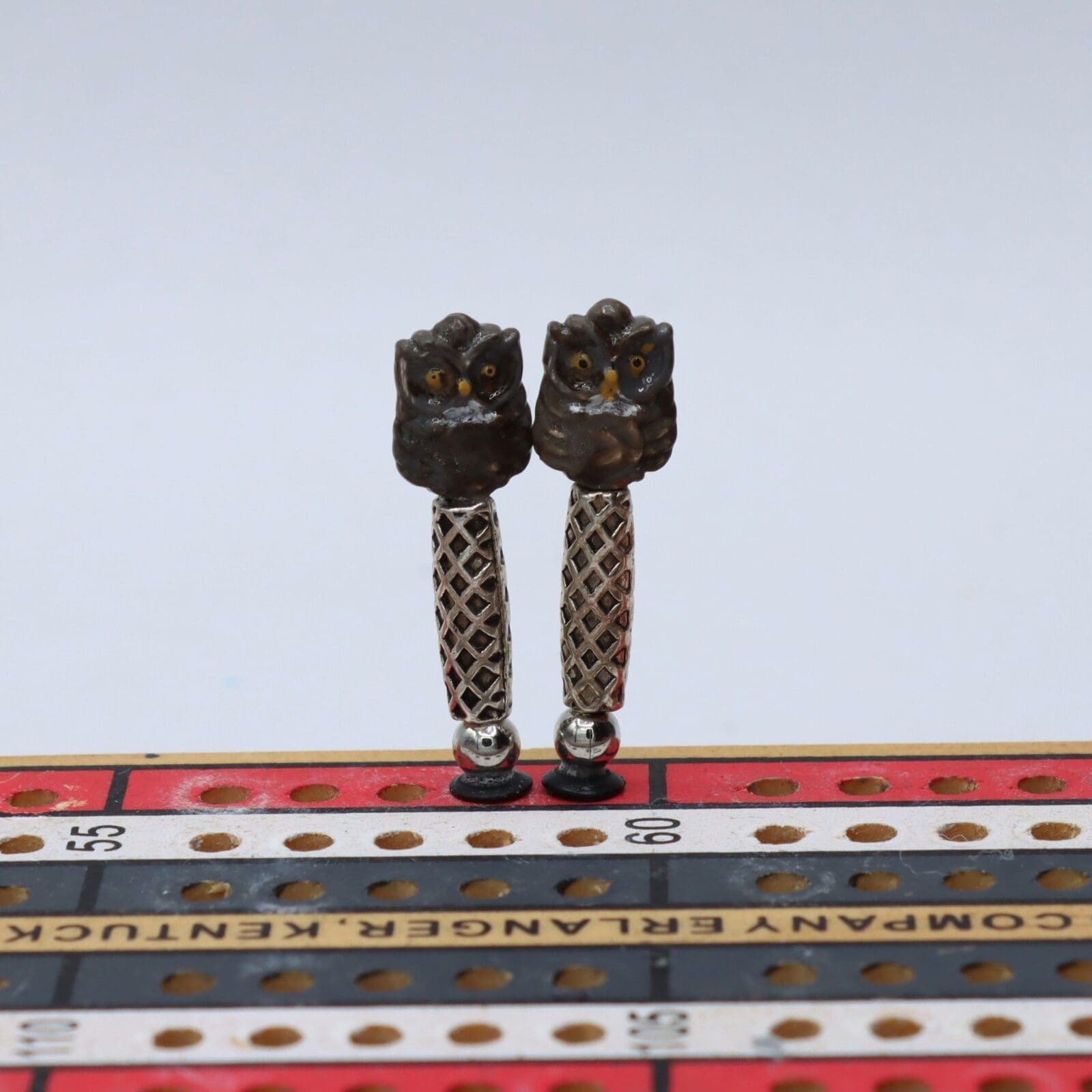 Striking Grey Owl Cribbage Pegs — elegantly crafted bird-themed scoring pegs that bring a touch of woodland charm to your cribbage game.