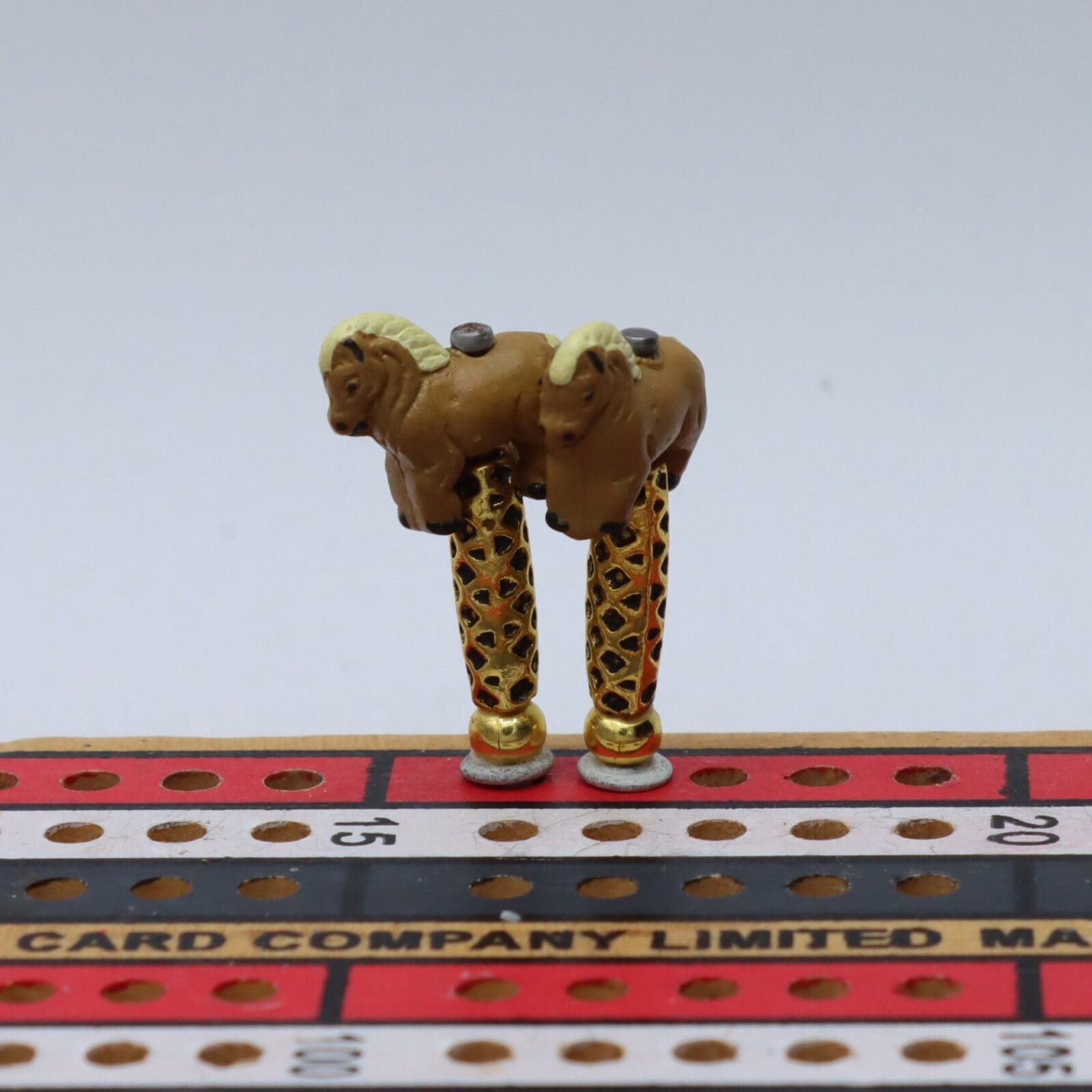 Bring the golden charm of the countryside to your cribbage board with these Palomino Horse Cribbage Pegs! Each peg is crafted to resemble a palomino horse, showcasing its warm golden coat and elegant form. Perfect for horse lovers, collectors, or anyone who enjoys animal-themed game pieces, these durable and collectible pegs add a touch of charm and character to every move. A lovely addition to your cribbage collection or a unique gift for fans of horses and equestrian style.