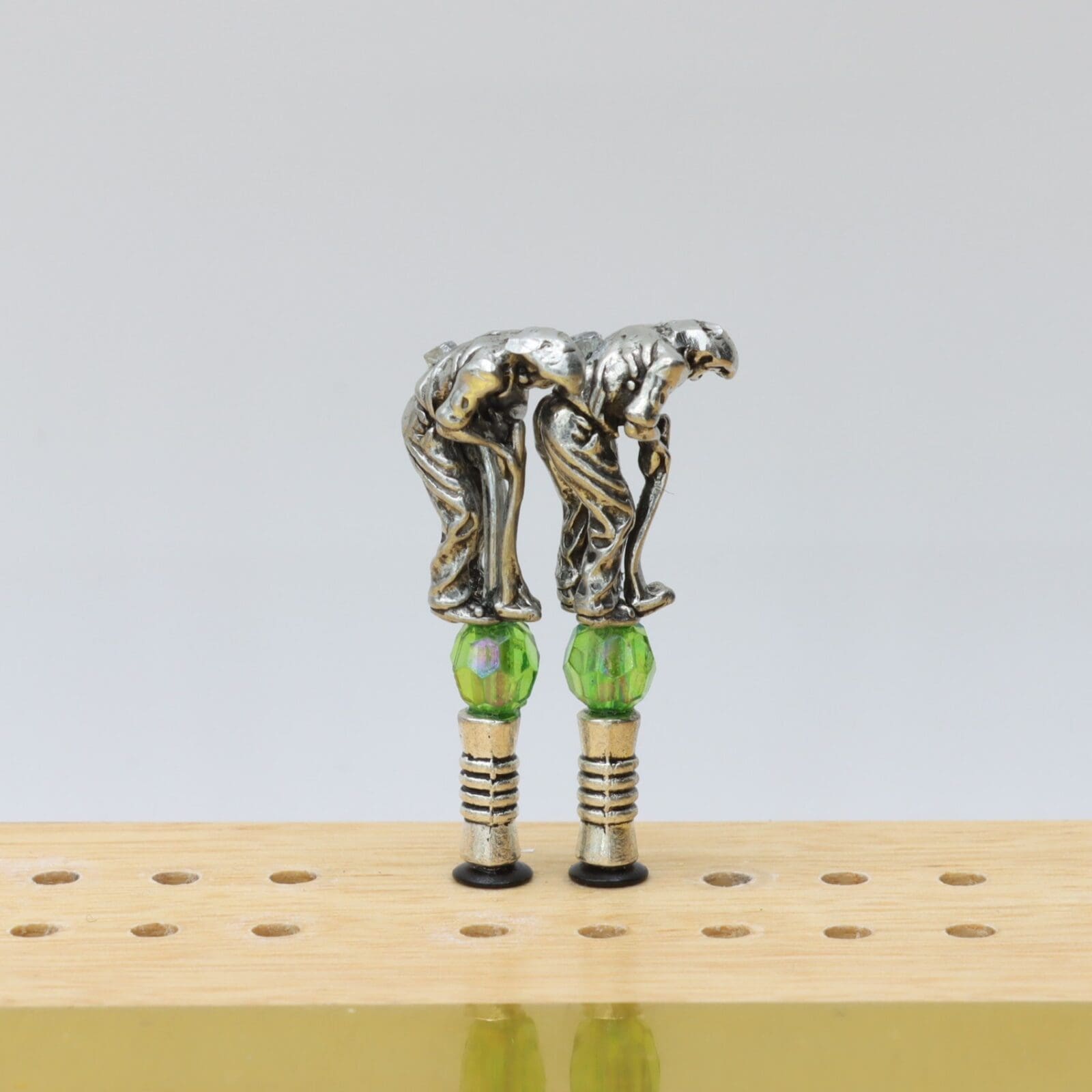 Elevate your cribbage game with the ‘Golfer Putting Cribbage Pegs’. These exquisite silver colored pegs are designed with meticulous attention to detail, featuring a golfer in mid-putt, capturing the essence of the sport. Perfect for golf enthusiasts, these pegs add a touch of class and sportiness to your cribbage board, making every game a special one. Made from metal alloys (lead and nickel free) then set atop an acrylic bead with an aluminum peg.
