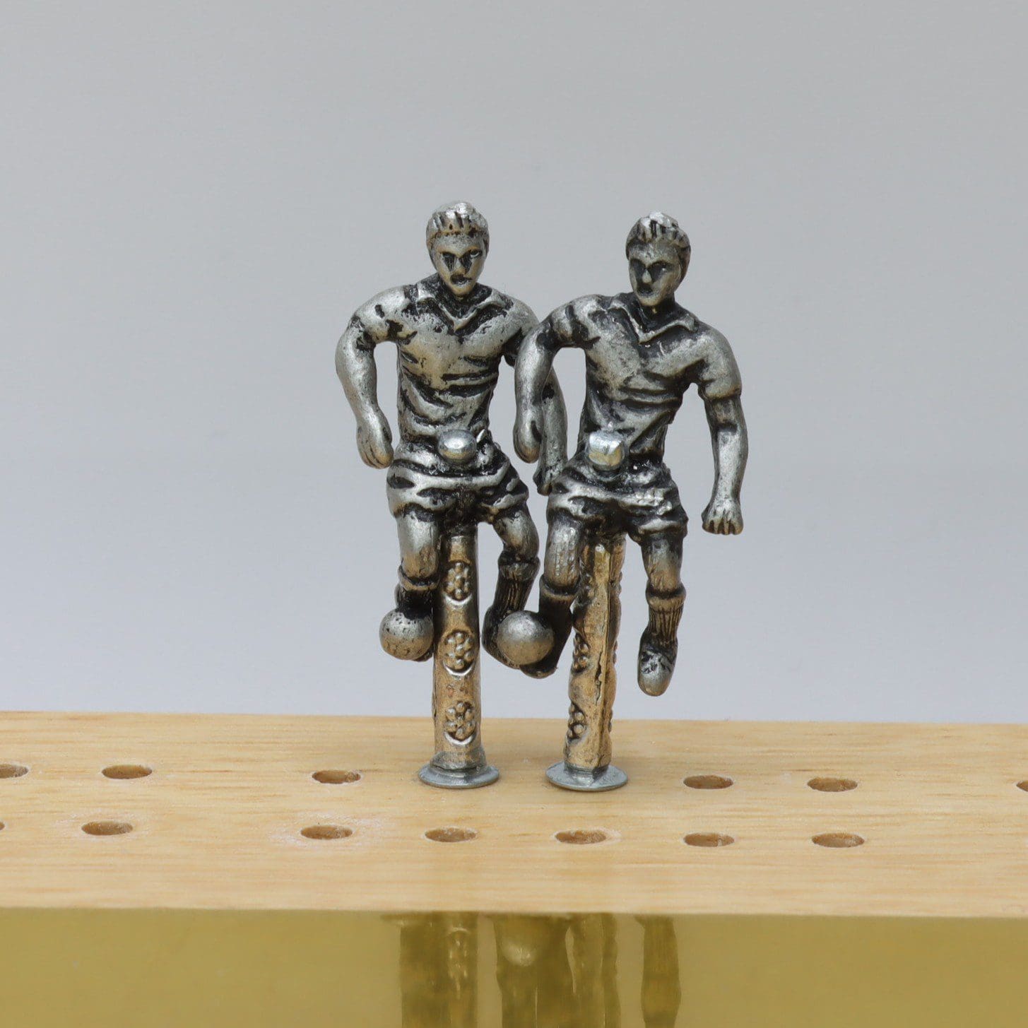Metal Soccer Player Cribbage Pegs feature detailed player designs cast in durable metal, offering a sporty and stylish way to keep score. Perfect for soccer fans and cribbage lovers alike.