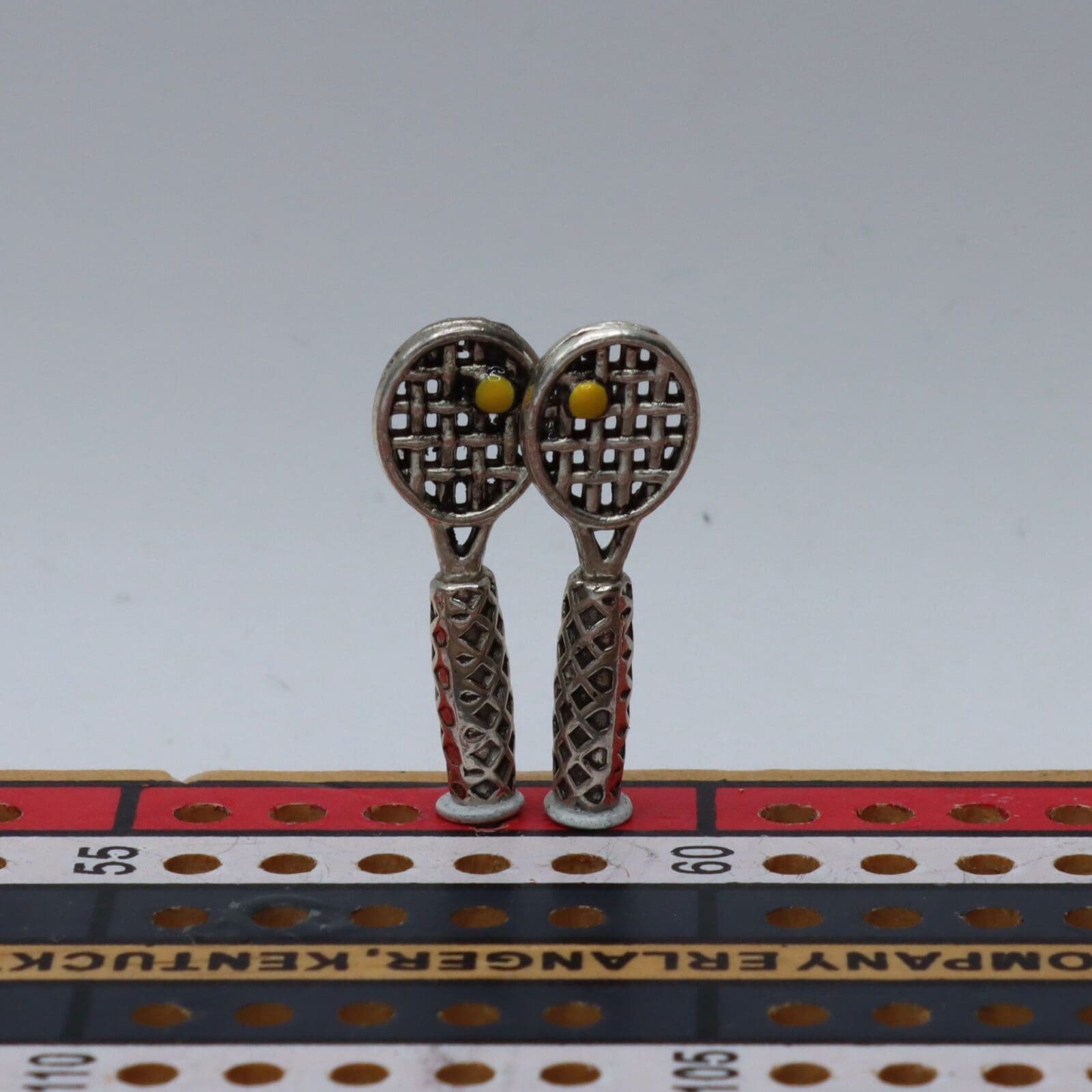 Tennis Racket with Ball Cribbage Pegs bring court-side style to your game, featuring detailed racket-and-ball designs that celebrate the love of tennis.